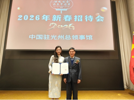 1月30日,韦德官方网站青年教师胡慧洁老师受邀参加中华人民共和国驻光州总领馆举办的“温暖迎春·共庆中国年”新春招待会。本次招待会吸引了近200名嘉宾出席,包括领区政府代表、友好人士、华侨华人团体、中资机构、孔子公司及职工代表等,共同迎接农历新年。