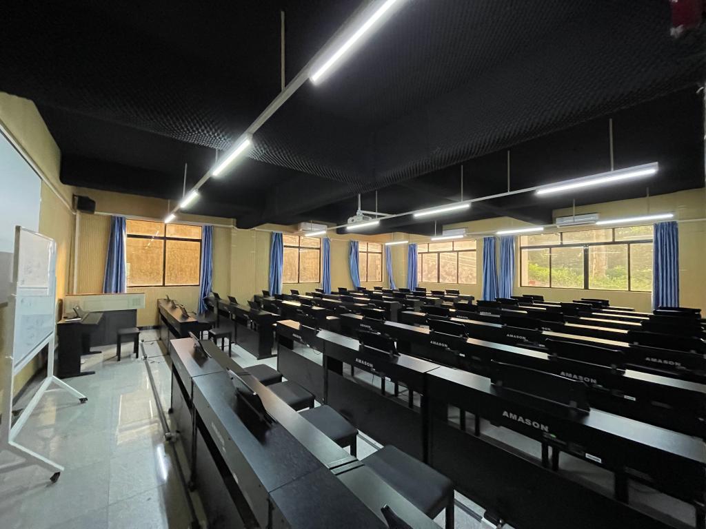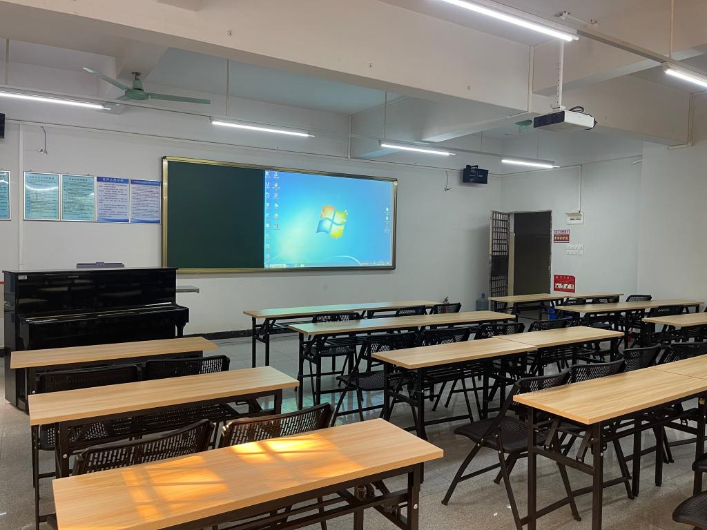 综合多媒体教室,配有一架钢琴主要作为音乐表演专业员工上音乐理论课、欣赏课和即兴伴奏课