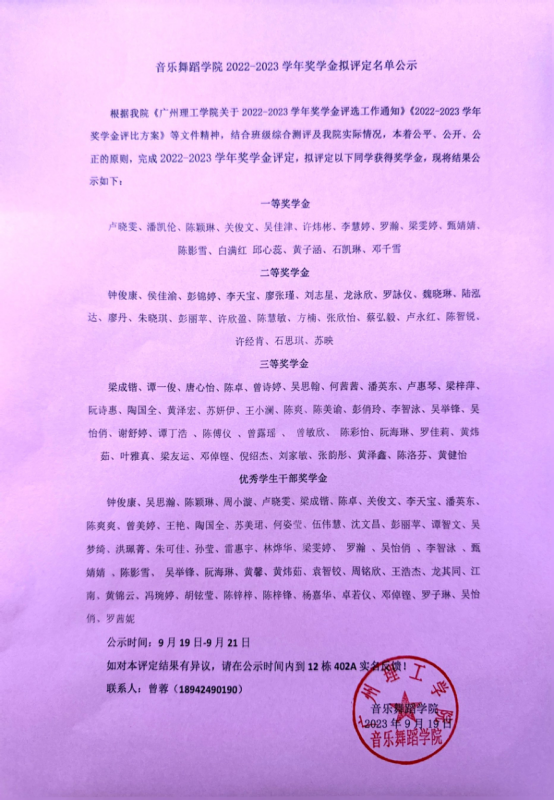 2022-2023学年奖学金拟评定名单公示