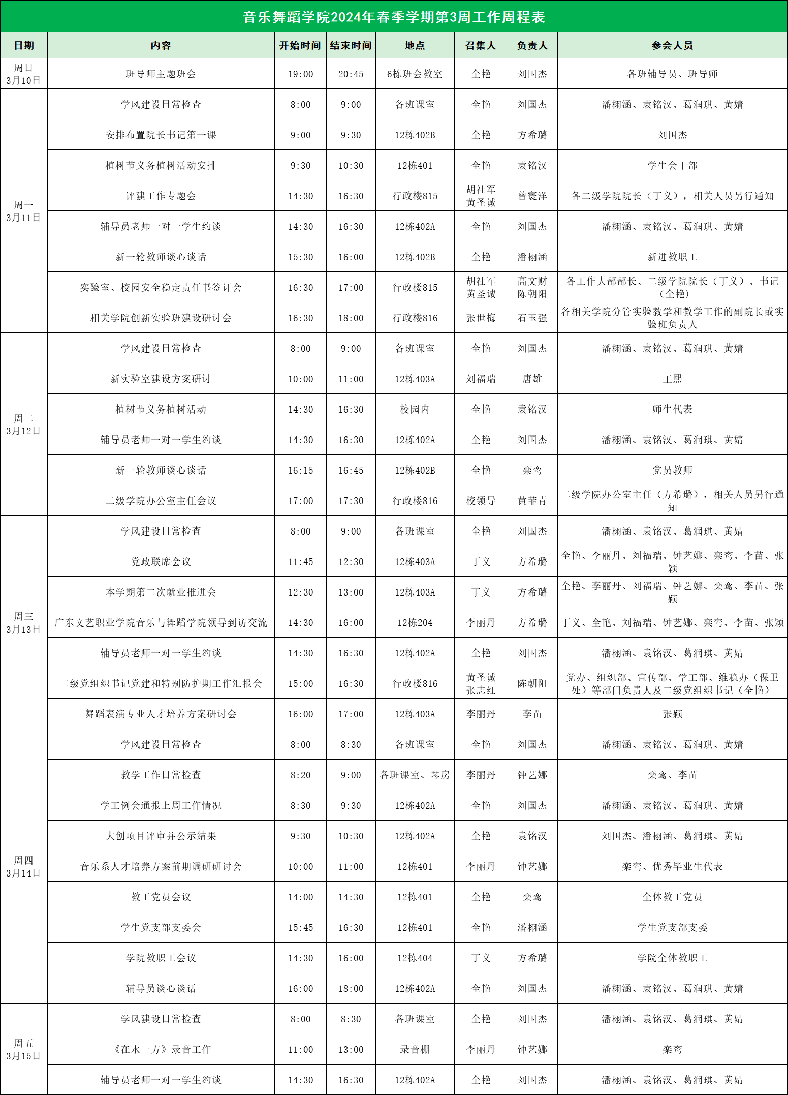 2024年春季学期第3周工作周程表