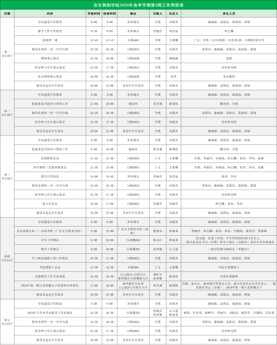2024年春季学期第4周工作周程表