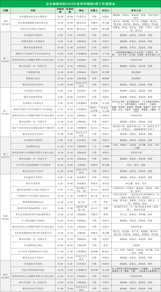 2024年春季学期第5周工作周程表