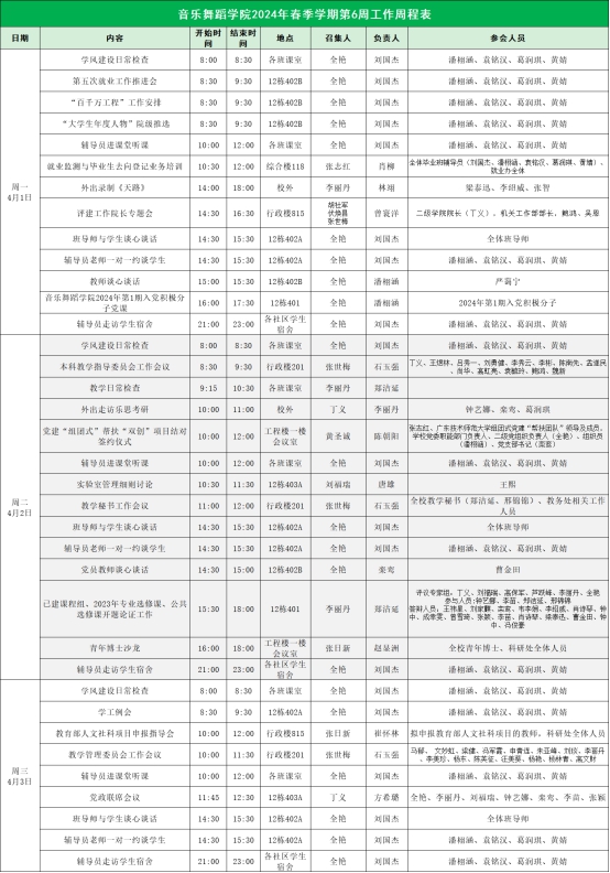 2024年春季学期第6周工作周程表