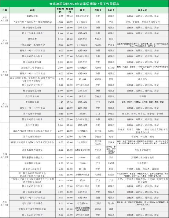 2024年春季学期第15周工作周程表