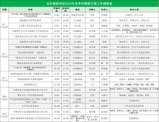 2024年春季学期第21周工作周程表