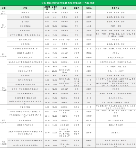 2024年秋季学期第2周工作周程表