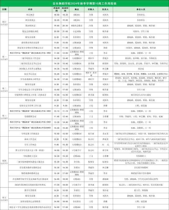 2024年秋季学期第10周工作周程表