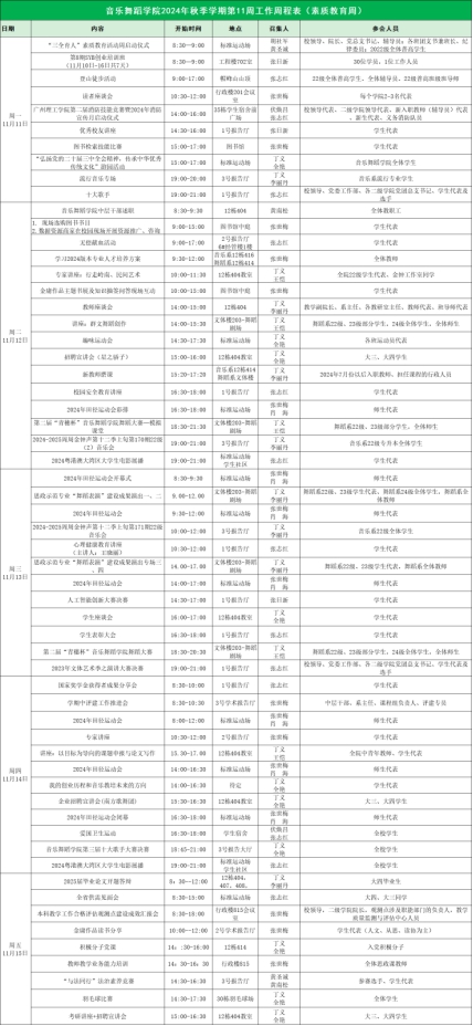 2024年秋季学期第11周工作周程表(素质教育周)