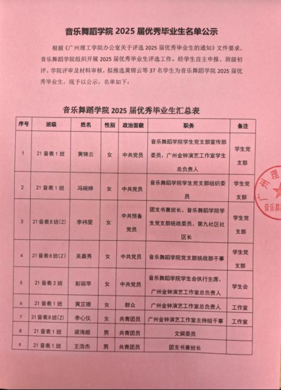 2025届优秀毕业生名单公示