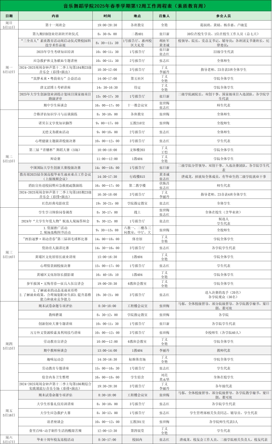 2025年春季学期第12周工作周程表(素质教育周)