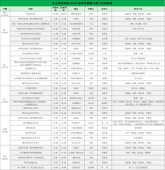 2025年春季学期第14周工作周程表