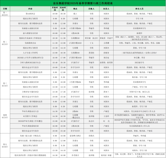 2025年春季学期第15周工作周程表