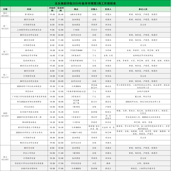 2025年秋季学期第2周工作周程表