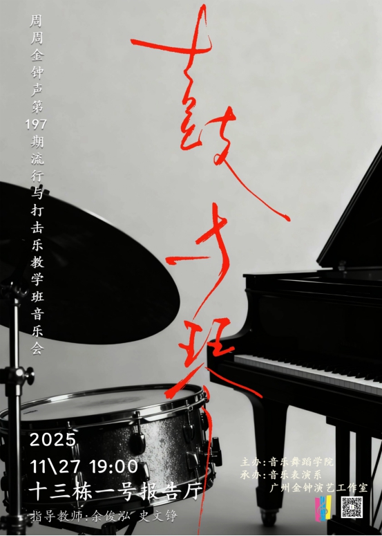 演出预告丨2025-2026周周金钟声第十三季上旬第197期流行与打击乐教学班音乐会