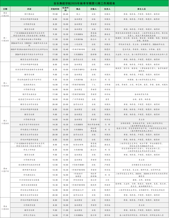 2025年秋季学期第12周工作周程表