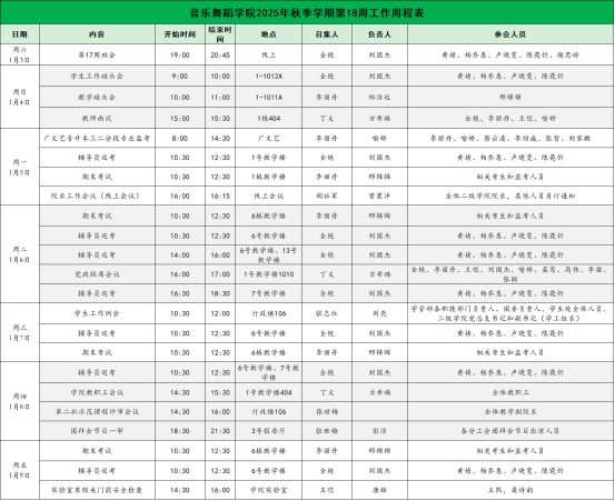 2025年秋季学期第18周工作周程表