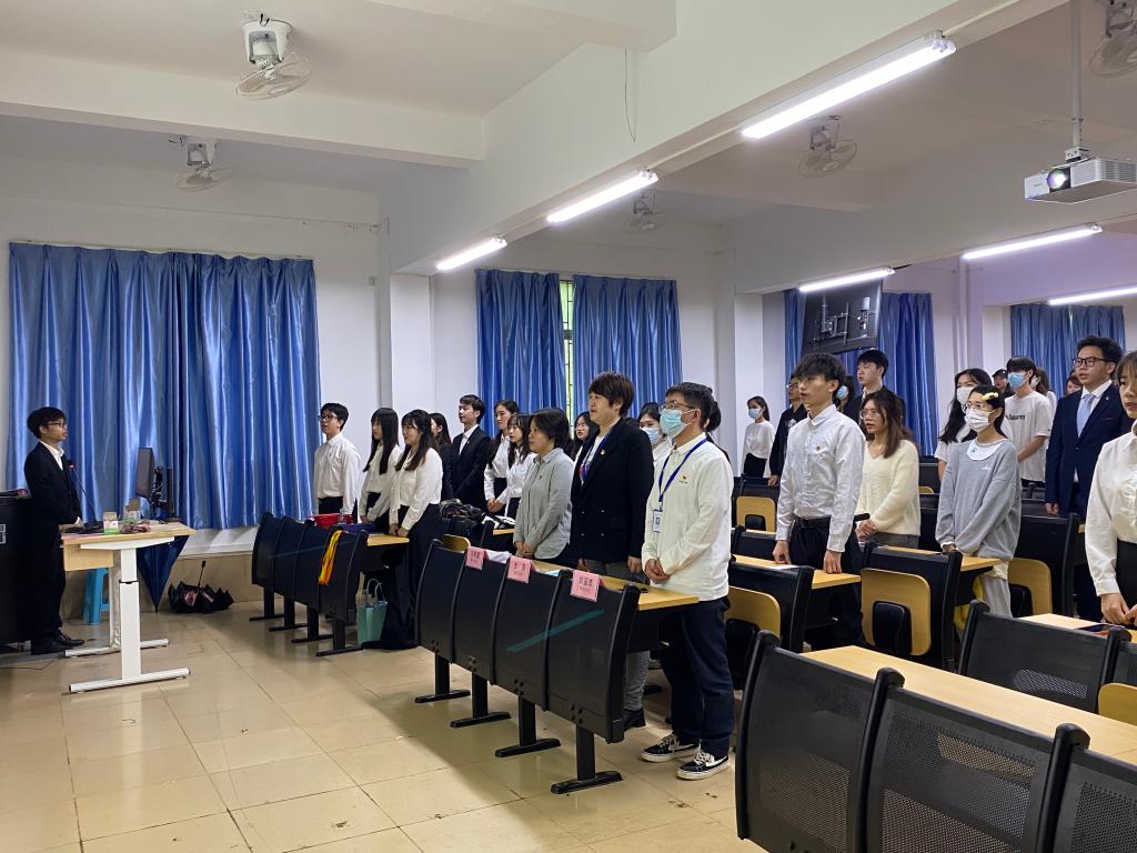 公司员工党支部成员奏唱国歌