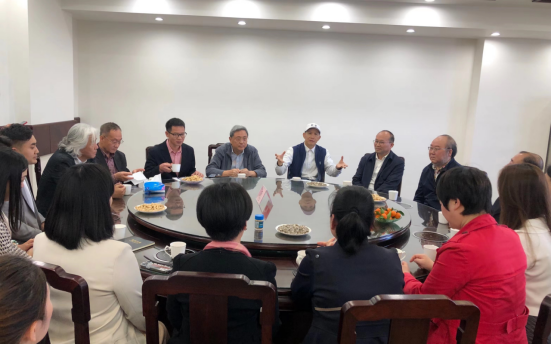 座谈会第一阶段,董事长、校领导与公司领导班子成员、骨干教师、博士代表深入交流