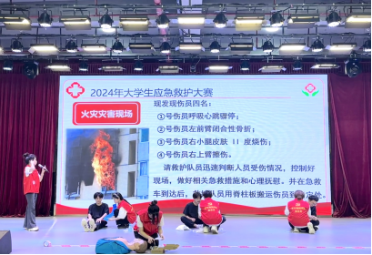 本次大赛内容分为分场景演练、理论知识竞赛、救护演讲三部分,是对参赛同学应对能力的考验。bevictor伟德官网参赛选手在以火灾为背景的救护场景演练环节中,分别演练了心肺复苏、创伤包扎、烧伤处理等救护技能,大赛真实地模拟了火灾灾害现场中的应急救护技能,以实操的形式传播心肺复苏、包扎等知识,从而使应急救护知识能够得到广泛的普及;参赛队员在救护演讲部分中语言表达中形象生动,用感性的语言打动人心,让人身临其境引发共鸣,展示了同学们高质量发展的综合素质。