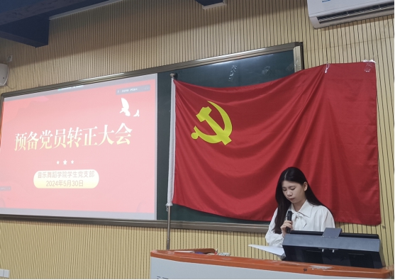 (庞妙怡)为进一步做好党员发展工作,增强基层党组织的凝聚力,公司员工党支部于2024年5月30日在12栋414教室召开预备党员转正大会。出席本次大会的有公司员工党支部书记潘栩涵老师以及员工党支部全体党员,本次大会由杨嘉华同志主持。