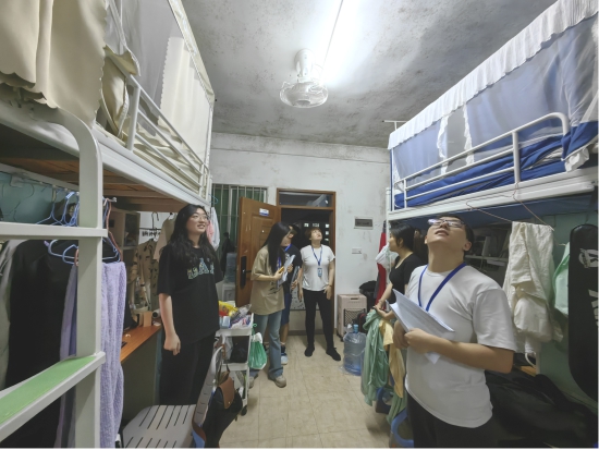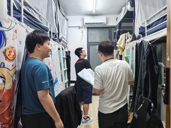 (卢晓雯)2024年5月5日晚,公司组织辅导员深入员工宿舍,排查安全隐患,关怀员工情况。党总支副书记全艳、学工组长刘国杰及辅导员潘栩涵、袁铭汉一同前往。