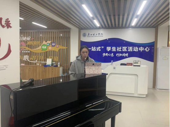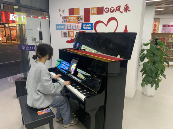 符艺馨同学以《如此》与《日不落》的甜美歌声率先热场,瞬间点燃全场热情,引得围观及对岸阳台的同学纷纷挥手互动;刘丽晴同学指尖流淌的柴可夫斯基《四月·松雪草》,如春日嫩芽般清新灵动,将喧嚣瞬间带入静谧的俄罗斯早春意境;林妙天同学深情演绎钢琴版《不为谁而作的歌》,以黑白键的细腻独白唤起观众对青春梦想的强烈共鸣;压轴登场的陈炜玲同学则用单簧管醇厚与明亮交织的音色,完美诠释了《老人河》的沧桑厚重与《城市的光》的希望璀璨。