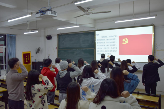 会议开始,全体起立面向国旗奏唱国歌。接下来由主持人汤尧天同学宣布本期预备党员转正人员名单:余银燕、林丽敏、刘耀斌、王韵欣、李春晓、王紫炫、郑诗雨、杨媚、陈俊芳、赵晋、沈莉圆、顾梓辉、彭紫欣及介绍本期转正预备党员的基本情况。随后13名预备党员依次从个人情况、思想、学习、生活、工作、存在的不足及努力的方向、自我鉴定及转正申请七个方面汇报了自己在预备期的表现。在场正式党员对其情况进行提问,预备党员们依次回答问题。经党员投票表决、支部讨论通过,同意余银燕、林丽敏、刘耀斌、王韵欣、李春晓、王紫炫、郑诗雨、杨媚、陈俊芳、赵晋、沈莉圆、顾梓辉、彭紫欣13名同志按期转为中共正式党员,并由员工党支部书记张远老师带领党员庄严宣誓。