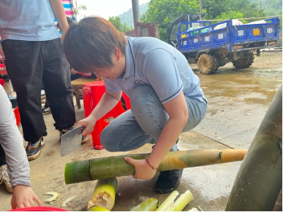 7月2日,“乐雅西乡·筑梦基层”突击队来到树山村学习并协助笋农进行竹笋砍摘,公司党总支副书记全艳、学工组组长刘国杰、公司员工党支部书记潘栩涵、团总支书记袁铭汉以及辅导员葛润琪一起走进乡村基层,与突击队一同亲身体验劳动的乐趣。通过笋农的介绍,突击队成队员们了解了如何寻找成熟的麻竹笋、如何控制力道与方向砍笋、如何实用砍刀等知识,老师们与队员们积极参与砍笋、剥笋的实践活动,在享受劳动快乐的同时,也加强了对麻竹笋的生长环境、种植特点等方面的了解,发挥自身的战斗作用和吃苦耐劳精神。