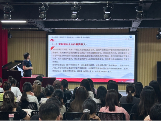 全艳副书记传达学习贯彻党的二十届三中全会精神,着重把握学习党的二十届三中全会精神六个方面,深刻领会重要意义。全书记指出,在快速变化的社会背景下,艺术与科技的结合成为推动创新发展的重要方向。此外,她强调在中国进行开拓创新的重要性,希望同学们不仅专注学业和研究,还需拓展视野和理解能力,以应对未来的社会挑战。