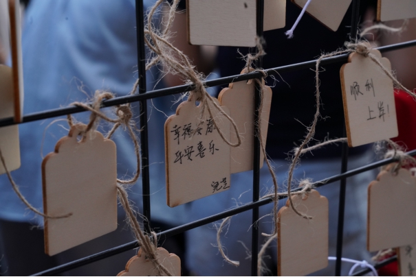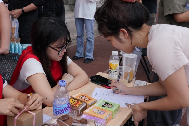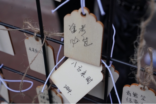 活动开始前,工作人员们还在区域内分设了各个活动的范围,并为同学们耐心讲解了游戏规则。同学们积极参与游戏赢得奖品,并且在祈福牌上写下自己最诚挚的愿望,书写下对公司的美好祝福,也写下了诗词和祈愿文。祈福牌上不仅寄托着同学们对未来的向往与希望,还传承了中华民族重视承诺的价值观。