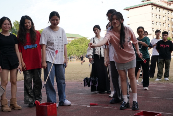 本次游园活动设置有“主题打卡点”“飞环套奖”“投壶”“猜灯谜”“祈愿祝福”五个游戏项目,同学们参与游戏即有机会赢得奖品。游园游戏内容涵盖了诗词歌赋、历史典故、民俗风情等中华优秀传统文化。整个活动现场都弥漫着浓浓的“中国风”氛围,吸引了许多同学前来参加。通过完成游戏获得礼品的奖励机制,调动起同学们参与游园活动的积极性,激发了同学们学习中华优秀传统文化的热情,让bevictor伟德官网的同学们近距离感受到了传统文化的博大精深。