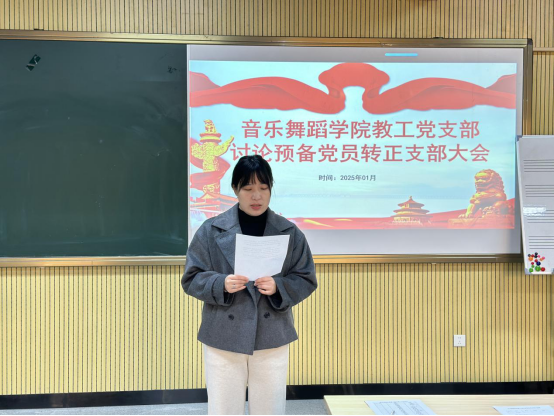 (张颖、郑紫婷)为进一步做好党员发展工作,增强公司党支部凝聚力,提高党员积极性,2025年1月2日,公司教工党支部在12栋401教室召开预备党员转正大会,公司教工党支部全体党员参与,本次会议由公司组织员潘栩涵同志主持。