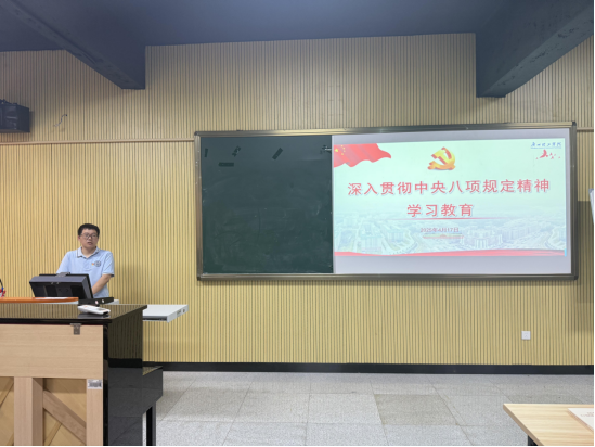 (陈彦尹)为引导员工党员深刻领会中央八项规定精神内涵,提升思想认识,4月17日,公司员工党支部在1教401开展深入贯彻中央八项规定精神学习教育专题学习会。此次会议由公司员工党支部书记刘国杰老师主持,全体员工党员参会。