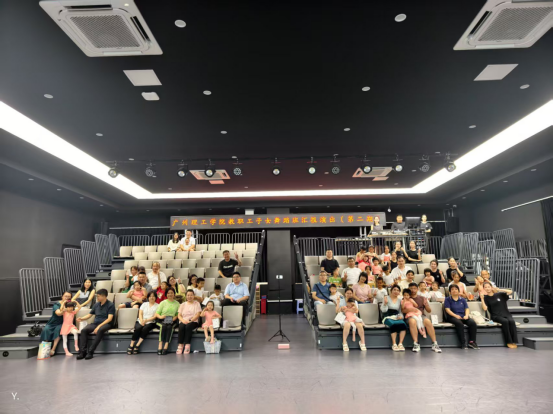 到场的领导、家长和小朋友们在舞蹈剧场看台合影