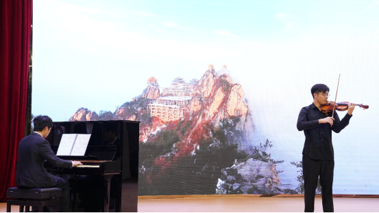 伴随着主持人激情满满的开场白,音乐会就此拉开了帷幕。首先由邓毅杰同学为我们带来爵士鼓独奏《four》,给老师和同学们进行了预热,让我们对接下来的音乐会更加充满期待;作品《南屏晚钟》描述了一位年轻少女的相思之情;《.City of stars》表达出男女主人公在追求人生梦想时的那份孤单、坚定和期许;《彩云追月》这首曲子是描写人们心目中的月宫仙境,两位同学的表演,彰显了典型的广东民间音乐风格,让同学们陶醉其中;作品《Turkish March》在吕迪莎、李子妍两位同学的手中演奏得更是精彩绝伦;独唱《Parla Piu Piano》以黑社会和交易的故事作陪衬,且以其清澈如甘泉的旋律反复歌咏爱情;小提琴独奏《中原畅想曲》演奏出浓郁的河南地方风味;《赤子情》抒发了赤子们对祖国的思念,讴歌对祖国的眷恋之情;四手联弹《森林狂想曲》精彩的演绎仿佛让同学们置身于森林中;《蝶恋花》让我们听见了作者心中无尽的空虚惆怅;混声小组唱《你来了》这首抒情歌曲,倾诉了党中央对广西人民真挚的情怀以及各族人民对党和生活的热爱之情;钢琴独奏《爱之梦》音乐深情婉转,抒写弗莱里格拉特诗中的意境;小组唱《莫尼山》仿佛让大家置身于连绵不断的大山,宽广无垠的草原;最后,全体同学合唱的《我爱你,中国》,歌曲表达了对祖国的热爱,全体同学气势磅礴,饱含深情的演绎了这首歌曲,令人久久不能忘怀。