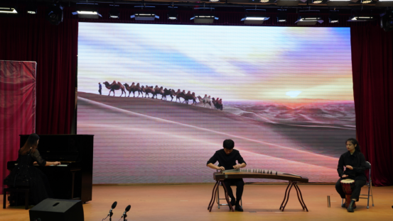音乐会一开始,由整翻支乐队表演的《玫瑰少年》《高贵与丑》他们带给大家了蓬勃的活力与个性的发扬瞬间点燃了现场的氛围,博得了在场同学们的阵阵掌声。紧接着唐开祯,张韵彤,邓千雪同学以丝绸之路为题给我们带来民乐合奏《行者》带领我们领略漠漠⻩沙中的信仰与文明。陈盈伶、梁小泳等同学的小组唱《水韵》组曲把六首大家耳熟能详的中国经典⺠歌作品串联起来唱出了水的“万物之灵”又落叶归根于“万物之源”的寓意。⻩炜、陆泓达、⻩于珊、文静绮同学的小组唱《龙文》涵盖了多种中华文化元素也向同学们展现了独特的魅力。表白歌曲《我喜欢》它的本意是:“对心爱的人的告白,我愿意用全世界作为铺垫”让现场再次沸腾。最后,在意境高阔的大合唱《万疆》中,音乐会进入最后的高潮,并在现场热烈的掌声与欢呼声中拉下序幕。