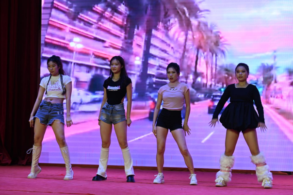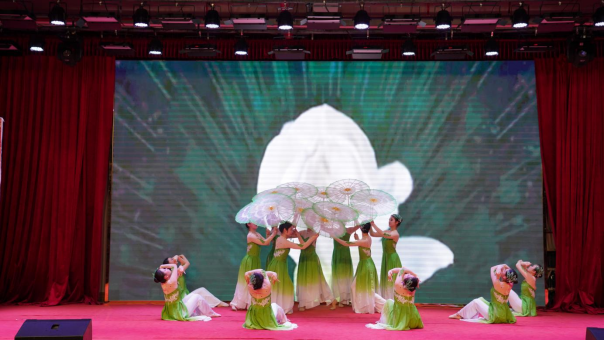 首先拉开序幕的表演是群舞《茉莉花开》,绿黛新颜,手持流光,梦里红尘,茉莉花开。于时光的长廊中细品夏日的清新,在浓墨重彩间广舒长袖霓裳羽衣,在素笔勾勒处凌波微步曼舞轻歌。接下来,静谧的竹林深处,傣家少女举起竹笠帽,来遮掩自己憧憬美好未来而又羞于表达的少女情怀。谢水清,陈玉瑶,陈宇曦三位同学的《般般入画》,带观众们一同领略傣家风情。青春是充满阳光的,青春有无畏的精神,今天我们用青春的朝气将激情的火焰点燃,在这热辣的夏天让我们一起舞动释放自我的魅力。程兆欣,万佳俐,高湘,高慧妍四位同学带来的《Forever young》,曼妙的身姿、精巧的舞步,在视觉上和听觉上都给观众带来了绝佳的享受,赚尽了现场同学们的掌声,将整个会场气氛又一次推向高潮。下面,邱栩琦,贺凤鸣,周钰,高甜甜踩着拉丁舞步,为我们带来了一种源自北美的民间舞蹈《shoot》,它舞步轻快,浪漫而富有活力。最后是22级舞蹈2班全体同学带来的蒙古串烧《草原礼赞》,草原辽阔,让人魂牵梦萦;骏马奔腾,撼人心驰神往;飞鹰翱翔,既人心向往之。下马放歌,舞蹈作伴,挥手、跳跃间尽显蒙古族姑娘的热情淳朴之气质、直爽豪放之洒脱。