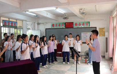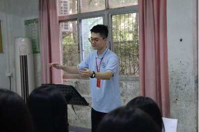 世铿中学合唱团的同学们跟着林永旷老师和“音舞小老师们”通过肢体动作体会呼吸的感觉,通过律动配合呼吸,体会橫膈膜控制气息,吸气扩张的状态。通过学唱半音阶构唱练习锻炼音准。从呼吸、音准,再到声音、和声训练,都不断地练习打磨,在学习的过程中,世铿中学学子们的审美修养得到提高,精神世界得到丰富,潜移默化地形成对美好声音的追求,发展美的品格,培育美的情操。