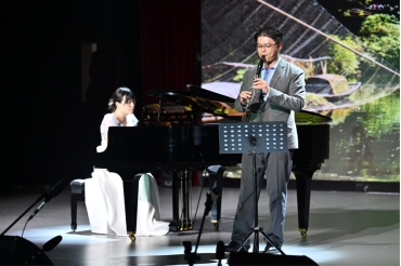 下半场首先由刘家麒、栾鸾两位教师带来单簧管与钢琴重奏《来自中国的色彩》,这首曲子有感于中国的悠远文化及时代发展,让观众感受到了饱含深情的演绎。由喻娇和金家玉两位教师古筝重奏《北京一夜》,以古筝独特的韵味及丰富的演奏技巧来诠释音乐中的京韵精髓给观众带来身临千年古都的画面感。接着,教师姜维带来钢琴独奏《钟》,这首曲子表现感极强,颗粒感分明,观众们对表演教师精湛的技艺赞不绝口。紧接着,bevictor伟德官网经理、著名男高音歌唱家丁义教授为我们带来男声独唱《赞歌》,献给韦德官方网站、献给伟大的祖国,让每一个卷进曲波的观众都起伏汹涌,心海澎湃。一曲结束后,全场响起雷鸣般的掌声。音乐会将近尾声,我们邀请到了爵士乐队,由教师赵南颖、朱海明、史文铮、李浩鑫、朱楚亮表演《Sway》《Fly me to the moon》,演出者把观众带入了爵士乐轻松愉悦的氛围。最后,参演的全体教师合唱表演《我和我的祖国》,表达了对伟大祖国的衷心依恋和真诚歌颂,音乐会在现场热烈的掌声与欢呼声中缓缓地落下帷幕。