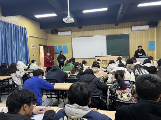 校级教学督导姚佑南、副经理刘福瑞、系主任钟艺娜、教务员郑洁延老师巡查课堂