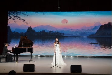 音乐会接近尾声,观众们欣赏到女声独唱《遍插茱萸少一人》,男声独唱《Mi Mancherai》、女声独唱《醉了千古爱》每一句歌词都给在场的每一位观众都留下了深刻的印象。最后,一曲古筝独奏《夜深沉》,让观众们充分感受古筝的魅力,听来别有一番意味。