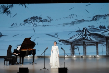 音乐会开场由一曲女声独唱《幽兰操》带观众进入沉浸的音乐世界。接着《故乡》、《亲爱的人何时到来》、《唱离愁》《一杯美酒》《江城子·乙卯正月二十日夜记梦》等经典声乐作品。其中,《唱离愁》这首歌曲的词通过自然元素的渲染,营造出一种充满离别与相思情愫的氛围,让听众们沉浸其中;《江城子·乙卯正月二十日夜记梦》表现出苏轼对妻子绵绵不尽的哀伤和思念,让听者无不感动。