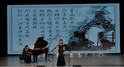 本次音乐会主要以独唱和独奏的形式为主,作品内容非常丰富,既有中国古典诗词的吟唱,又有西方歌剧咏叹调和现代歌曲的演绎,还有钢琴、古筝等乐器独奏。女声独唱《春花秋月何时了》深情演绎了南唐后主李煜的哀愁与无奈,男声独唱《忆秦娥·衡山月》则展现了范曾词作的意境开阔与内涵高妙,还有《虞美人·听雨》展现了人生悲欢离合的历程,让人在聆听中感受到岁月的流转和人生的无常。