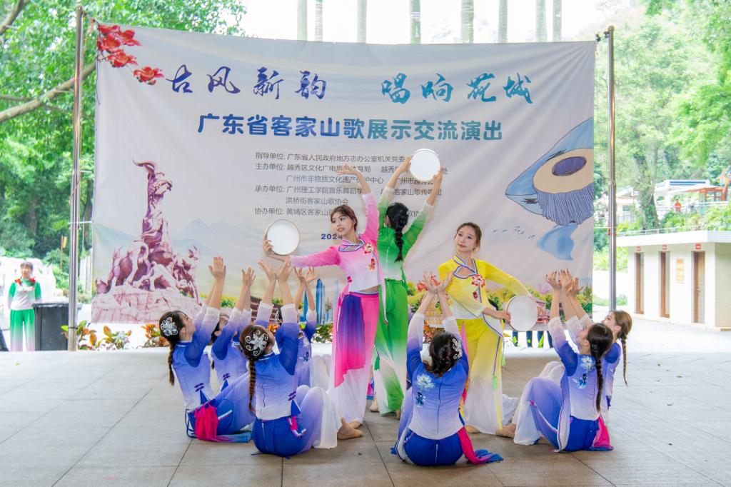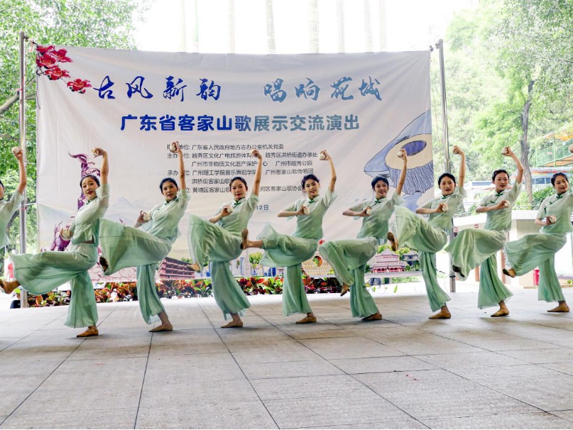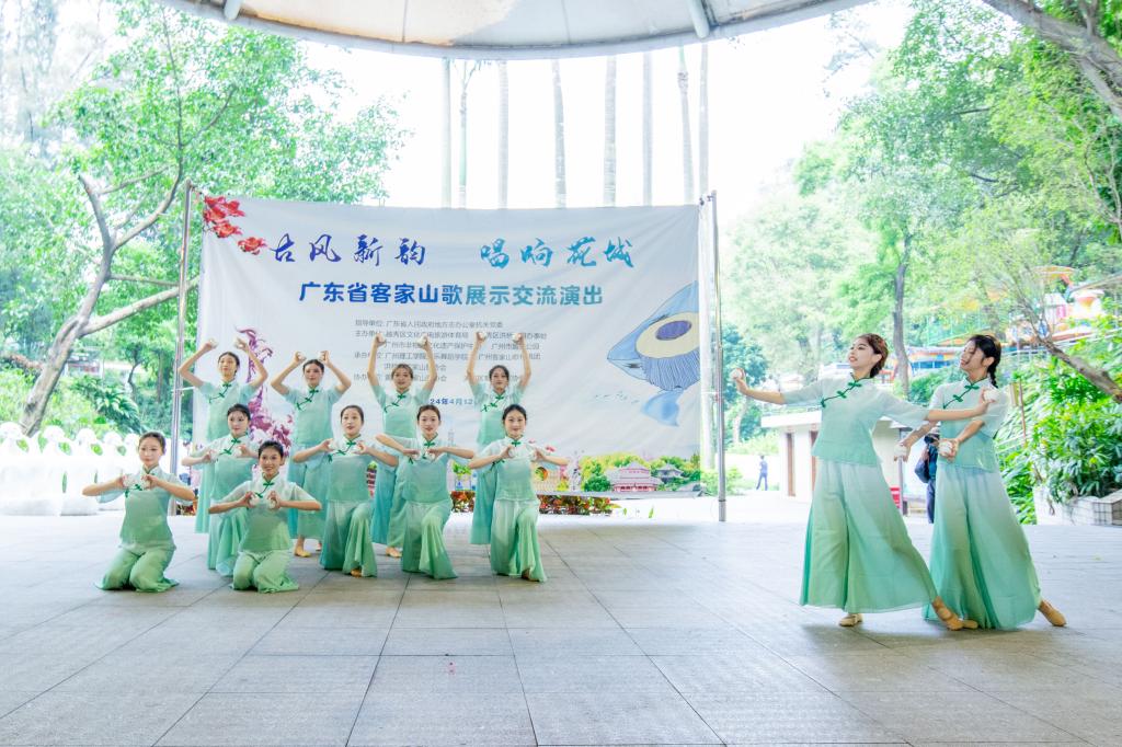 (李绍威 邢锦锦 李嘉嘉)4月12日上午,由广东省人民政府地方志办公室机关党委指导,越秀区文化广电旅游体育局、广州市非物质文化遗产保护中心等主办,bevictor伟德官网等三家单位承办的“古风新韵 唱响花城”广东省客家山歌展示交流演出活动成功举办。bevictor伟德官网师生受邀参加活动。本次演出活动在广州市越秀公园北秀歌舞台举办,参演队伍有广州市各区、河源等地的客家山歌传唱团和公司bevictor伟德官网师生。本次活动由bevictor伟德官网副经理刘福瑞、李丽丹带队,公司相关负责老师和10余名员工共同参与。