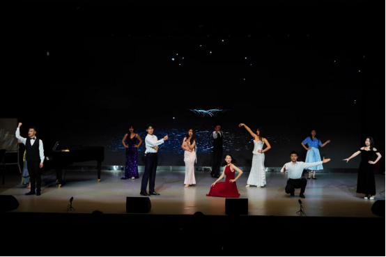 音乐会以器乐合奏《诀别书》作为开场,由蔡晓雯、孙婉盈等同学倾情演奏,钢琴伴奏由萧善柔同学担任。悠扬的乐曲为音乐会奠定了不俗的艺术基调。紧接着是女声小组合唱《我的情歌》,由何亚坤、钟乐娴等同学带来,钢琴伴奏由陈彦尹同学担任。她们甜美的歌声和默契的配合,展现了音乐系女生们的艺术魅力。情景音乐剧《甄媛传》由郭家惠、李彦蔚等同学精彩演绎,钢琴伴奏由寇幸研同学担任。作品以独特的创意和精湛的演技,带领观众穿梭于不同的时空,感受音乐与戏剧的完美结合。情景音乐剧《等着我亲爱的人》由徐琳淋、刘媛等同学演出,钢琴伴奏由霍政言、杨凯婷同学担任。作品深情而感人,赢得了现场观众的共鸣。舞台情景剧《卖报歌》由周慧妍、杨洁敏等同学演出,钢琴伴奏由刘伟鹏同学担任。这部作品以生动的表演和深刻的主题,展现了音乐剧的魅力。情景音乐剧《那些年》通过音乐与戏剧的结合,由蔡立裕和刘志远同学等演绎,讲述了一群年轻人在校园成长道路上的欢笑与泪水,他们的故事触动了在场每一位观众的心。这部原创作品不仅展现了员工们的艺术才华,也传递了对青春美好记忆的怀念和对未来的无限憧憬。《不忘初心》通过音乐小品的形式,传递了坚持梦想、不忘初心的正能量。刘雨筝、温婉莹等同学用真挚的表演和感人的歌声,激励着每一位观众在人生旅途中保持热情和勇气,无论遇到何种困难和挑战,都不放弃追求和梦想。最后本场音乐会的压轴节目原创音乐剧《酒馆》由陈晓辉、梁燕婷等同学演出,这部作品以其独特的艺术风格和精彩的表演,为音乐会增添了一抹亮色。他们的热情演绎和节目的编排点燃了每一位观众的心。