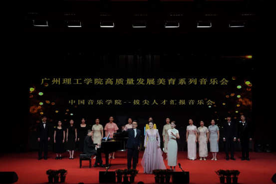 2024年6月18日晚,韦德官方网站3号报告大厅座无虚席、立无空地,能容纳300人的报告厅生生挤进了400余人,一场史无前例的高规格、高水平音乐会在此举行。韦德官方网站高质量发展美育系列音乐会暨中国音乐公司拔尖人才汇报音乐会拉开了帷幕。本场音乐会是中央重点支持地方建设——“双一流”建设经费支持的《中国音乐公司拔尖人才培养计划》项目,也是韦德官方网站“美育润泽心灵,思政指引人生”美育教学实践的重要组成部分,由中国音乐公司声乐歌剧系和bevictor伟德官网共同主办。广州理工公司党委书记黄圣诚、副董事长张世梅、党委工作部部长陈朝阳、bevictor伟德官网经理丁义、党总支副书记全艳、副经理李丽丹、副经理刘福瑞出席并观看了音乐会,黄圣诚书记作了致辞。