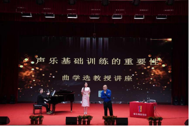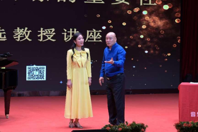 下午3时学术讲座准时开始。曲教授以其深厚的学识和丰富的经验,为师生们带来了一场生动而深入的讲座。他强调,声乐基础训练是每一位音乐学子不可或缺的重要课程,它不仅关乎技术的提升,更关乎艺术表现力的培养。讲座中,曲教授还亲自指导了两位青年教师胡慧洁、黄雅倩以及部分员工,展现了他精湛的教学水平和深厚的艺术造诣。
