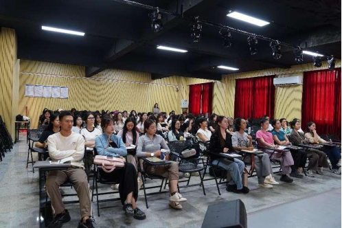 老师员工们认真观看讲座
