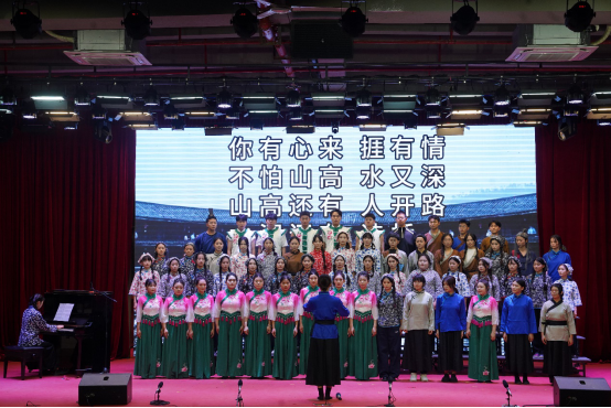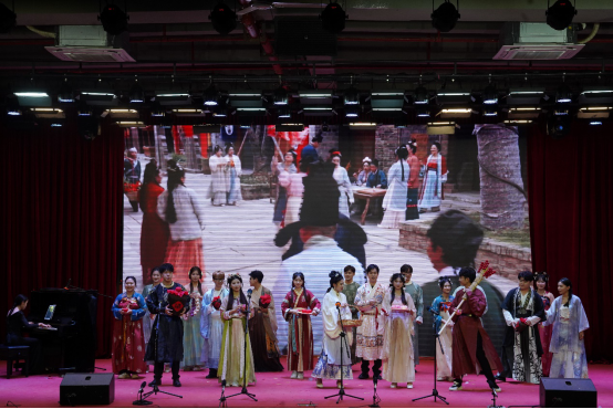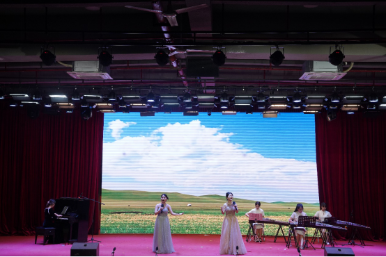 音乐会以一首青春洋溢的《海芋恋》拉开序幕,瞬间将观众带入了一个充满爱与希望的音乐世界。器乐合奏《一步之遥》,旋律中既有爵士乐的优雅又不乏探戈的热情,展现了音乐跨越风格界限的无限魅力。歌剧选段《大豆白米花生》以欢快的节奏和贴近生活的歌词,展现了音乐与生活紧密相连的温馨画面。男女小组唱《我的情歌》则以深情的歌词和动人的旋律,让每一位听众都感受到了爱情的美好与纯真。古筝重奏、 女生小组唱《映山红主题随想曲》以其独特的音色和深情的演绎,将观众带回了那个激情燃烧的岁月。音乐剧选段《雪狼湖》以其深情的歌词与动人的旋律,再次唤起了观众对美好爱情的向往。充满地域特色的原创舞台剧《客家人》是本场音乐会的亮点之一,同学们通过音乐与表演讲述了客家文化的独特魅力与客家人的坚韧不拔。器乐重奏《My heart will go on》《妹娃要过河》《若思念便思念》《往日时光》等节目同样精彩纷呈,各具特色。歌剧选段《伯爵,为何你如此诧异》这首经典作品的精彩演绎将音乐会推向高潮。重唱《敕勒歌》旋律优美动听,歌颂了北国草原壮丽丰饶的风光。合唱《无名的人》以其励志的歌词和动人的旋律,激励着每一位观众勇敢追梦,为音乐会画上了圆满的句号。