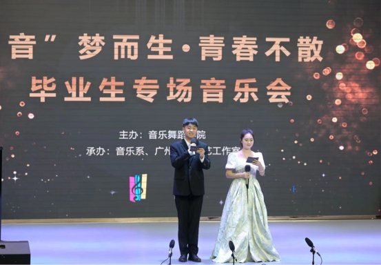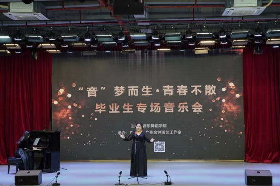 (覃诗涵)在毕业的钟声即将敲响之际,音乐系精心筹备的“音”梦而生•青春不散毕业生专场音乐会于2024年12月4日在十三栋一号报告大厅隆重举行。灯光聚焦的舞台,仿若一座承载了无数梦想与回忆的桥梁,连接着音乐系学子们的过去与未来。指导教师姚佑南教授和覃诗涵老师、毕业班员工代表以及在校生代表共同观看了音乐会。